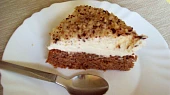 Krok 5: Korpus můžeme pokapat rumem, natřeme krémem a posypeme oříšky. Necháme v lednici ztuhnout alespoň 1 hodinu.