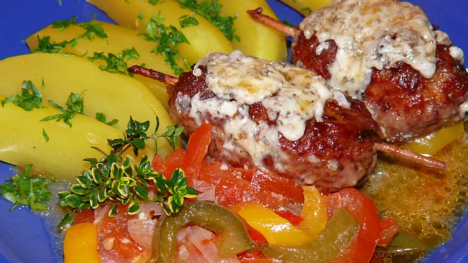 Krok 6: Mírně zastříkneme kečupem, podlijeme troškou bujónu a dáme do rozehřáté trouby na cca 30-40 minut zapéct. V průběhu pečení otáčíme, před dopečením posypeme nastrouhanou Nivou, kterou lehce zapečeme.