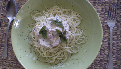 těstoviny s nivovou omáčkou,