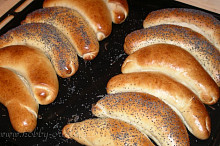 prelozime na plech a zakryte nechame kysnut na teplom mieste asi 40min, potrieme vajcom, posypeme a pecieme
