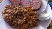 Nemáte doma párky? Nevadí. V tomto receptu je hravě nahradí dozlatova opečená slaninka. Luštěninový oběd s dávkou bílkovin hravě zvládne i začátečník. Pokud dodržíte suroviny v receptu a dáte zeleninový vývar nebo bujon máte vegetariánské jídlo na stole.