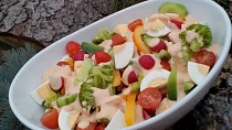 Recept ještě nebyl hodnocenKvěták uvaříme v osolené vodě na skus.Nakrájíme ho do mísy a přidáme nakrájené papriky, šunku a cibuli nadrobno.Cuketu a okurky nastrouháme na hrubém struhadle a přidáme…