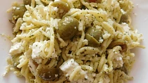 Do uvařených, scezených, teplých špaget dám olej, sýr na malé kostičky a promíchám. Pak přidám utřený česnek, sůl, pepř, koření, olivy nakrájené na půlky a promíchám. …