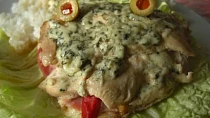 Filety z vnější strany okořeníme, nesolíme, losos i nepravý je již dost slaný. Otočíme a na vnitřní stranu filetů naklademe plátky lososa a olivy tak, aby při řezu byly…