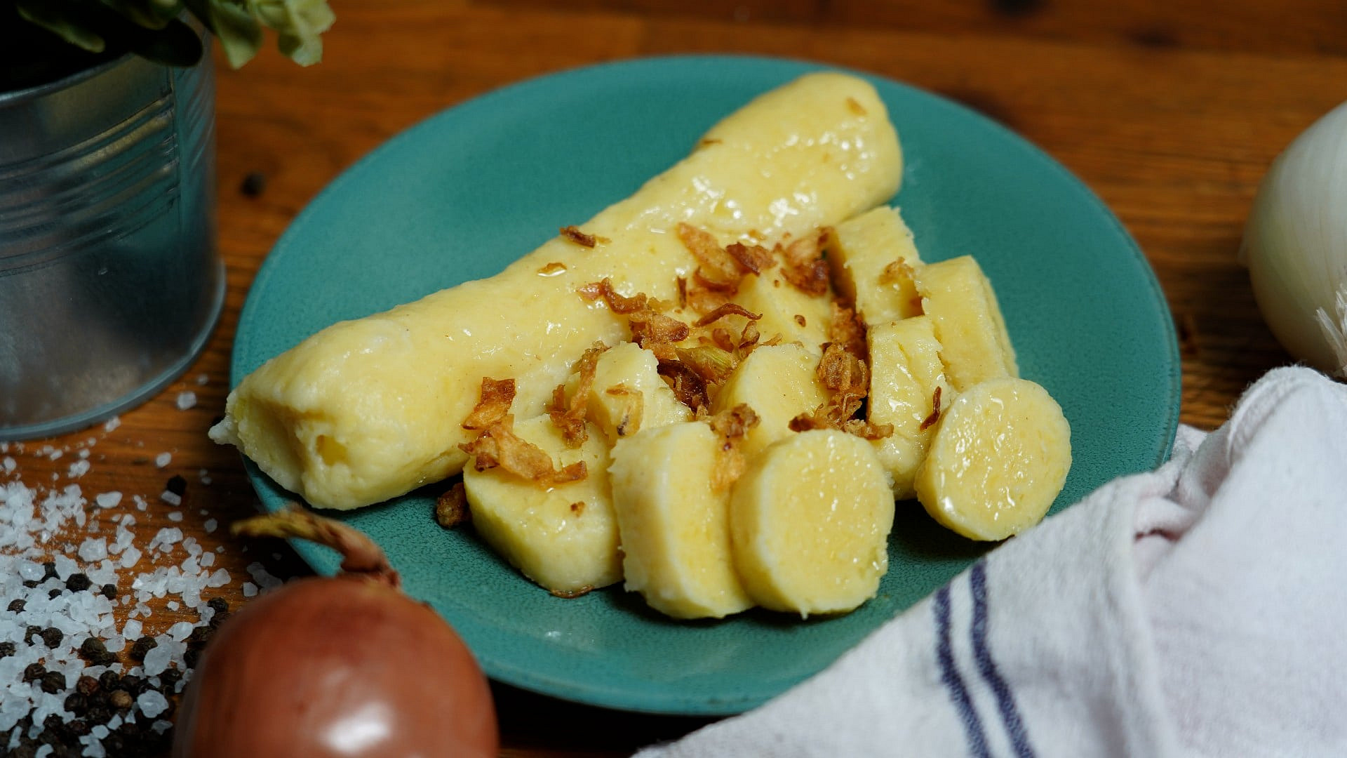 Bramborové knedlíky plněné uzeným masem: K výraznější chuti uzeného pomůže jeden trik a smažená cibulka jídlo doladí