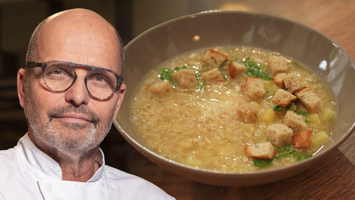 Česnečka podle Zdeňka Pohlreicha: K silné polévce s bramborami a vejcem patří speciální krutony se špekem