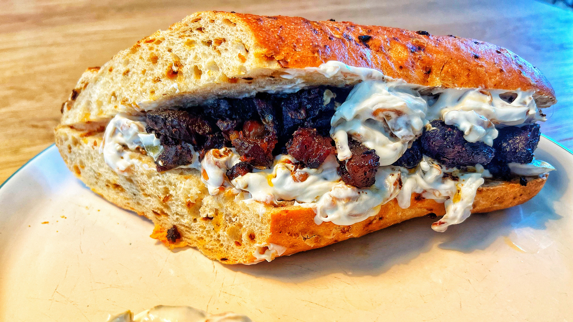 13 foto Zahráli jsme si na Punčocháře s Forejtem a vytvořili streetfood z české klasiky: Bagetu plněnou výpečky a cibulovým dipem