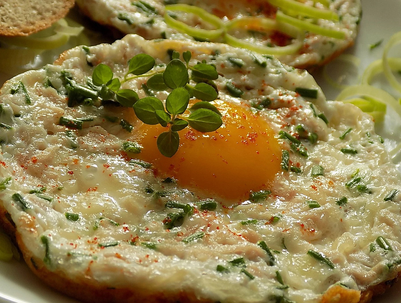 Kdo preferuje spíše slané snídaně, jistě ocení na snídani volské oko neboli sázené vejce, které je typické krásně tekutým žloutkem. Příprava vajec je velmi jednoduchá a v tomto případě celkový dojem a výslednou chuť ještě vylepší přídavek šunky, goudy a pažitky.