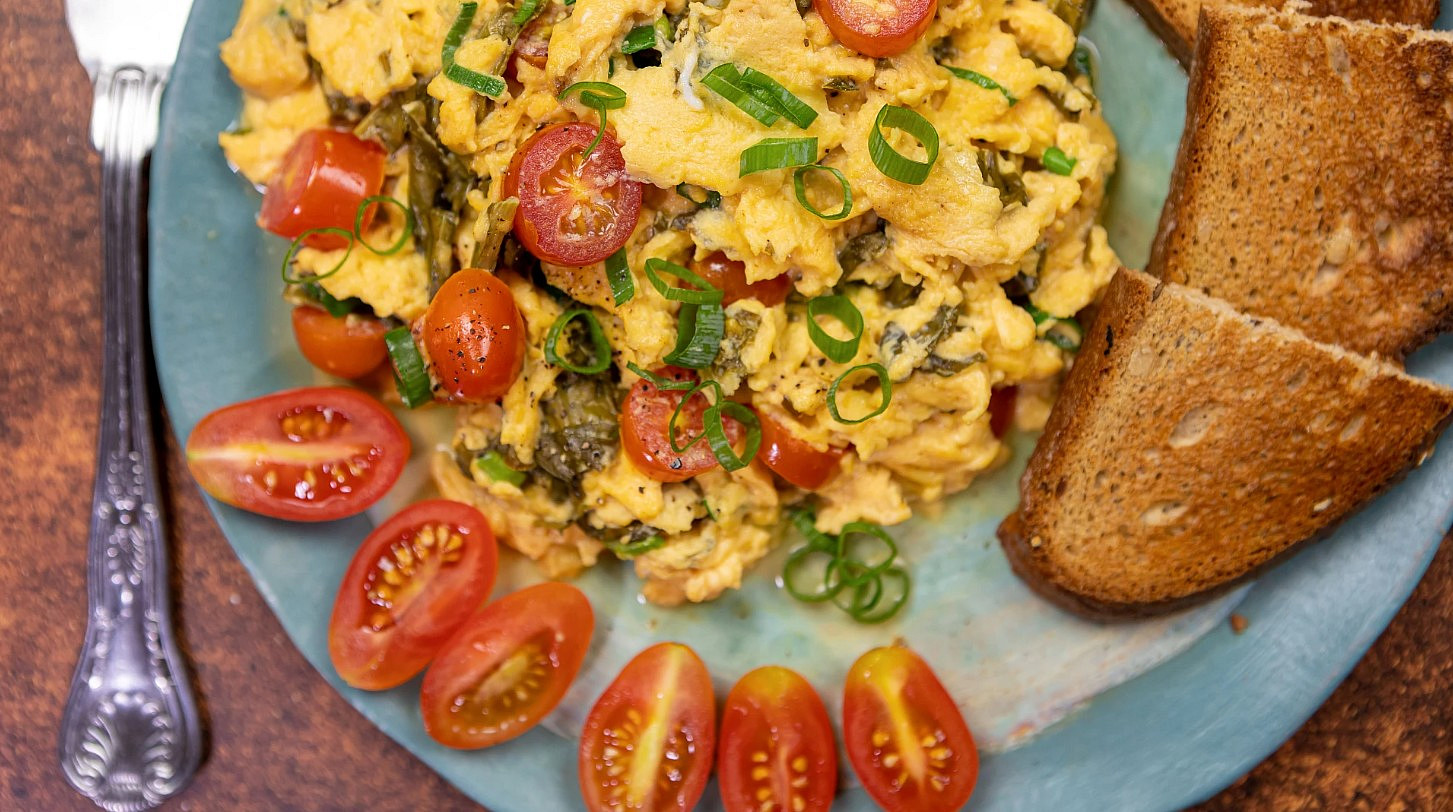 Míchaná vejce s rajčaty a medvědím česnekem Zdroj: Toprecepty