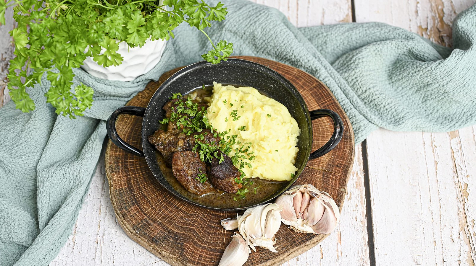 Hovězí kližka na česneku a majoránce
