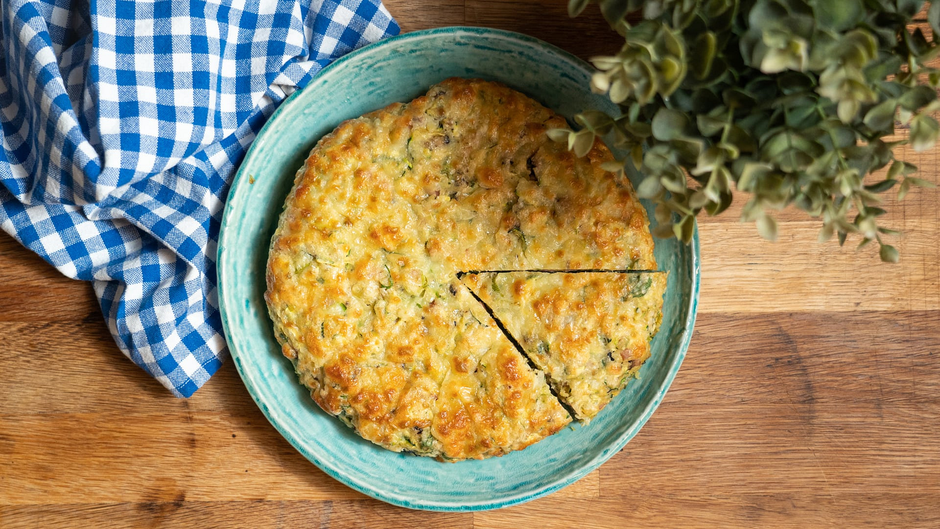 Naučíme vás jednoduchý postup podle videa. Vyzkoušejte cuketový koláč, do kterého patří kromě nastrouhané cukety také několik dalších surovin včetně sýru, anglické slaniny a vajec.