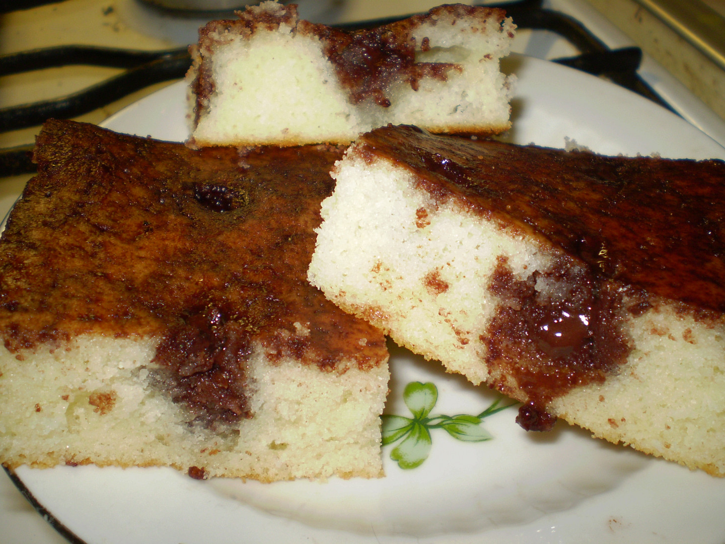 - Hned po vytažení na buchtu dejte polevu. To znamená, že ještě do horké buchty uděláte druhou stranou vařečky dírky (počet záleží zcela na vás) a hned buchtu polijete připravenou polevou. Rozetřete polevu pěkně po celé ploše, poleva vteče do dírek a na řezu bude po ztuhnutí velmi efektní. Spodní část buchty je světlá, ale v dírkách je tmavá.