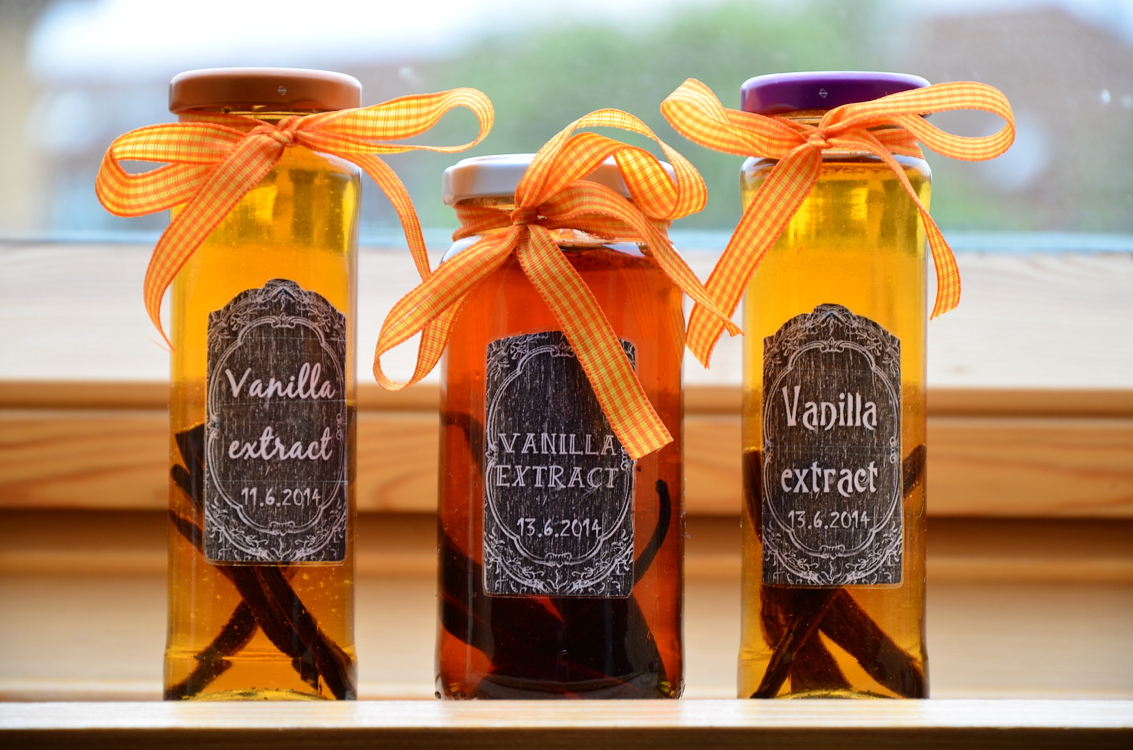 Hezky nazdobenou sklenici vanilkového extraktu s pěknou etiketou můžete darovat jako jedlý dárek třeba k Vánocům.