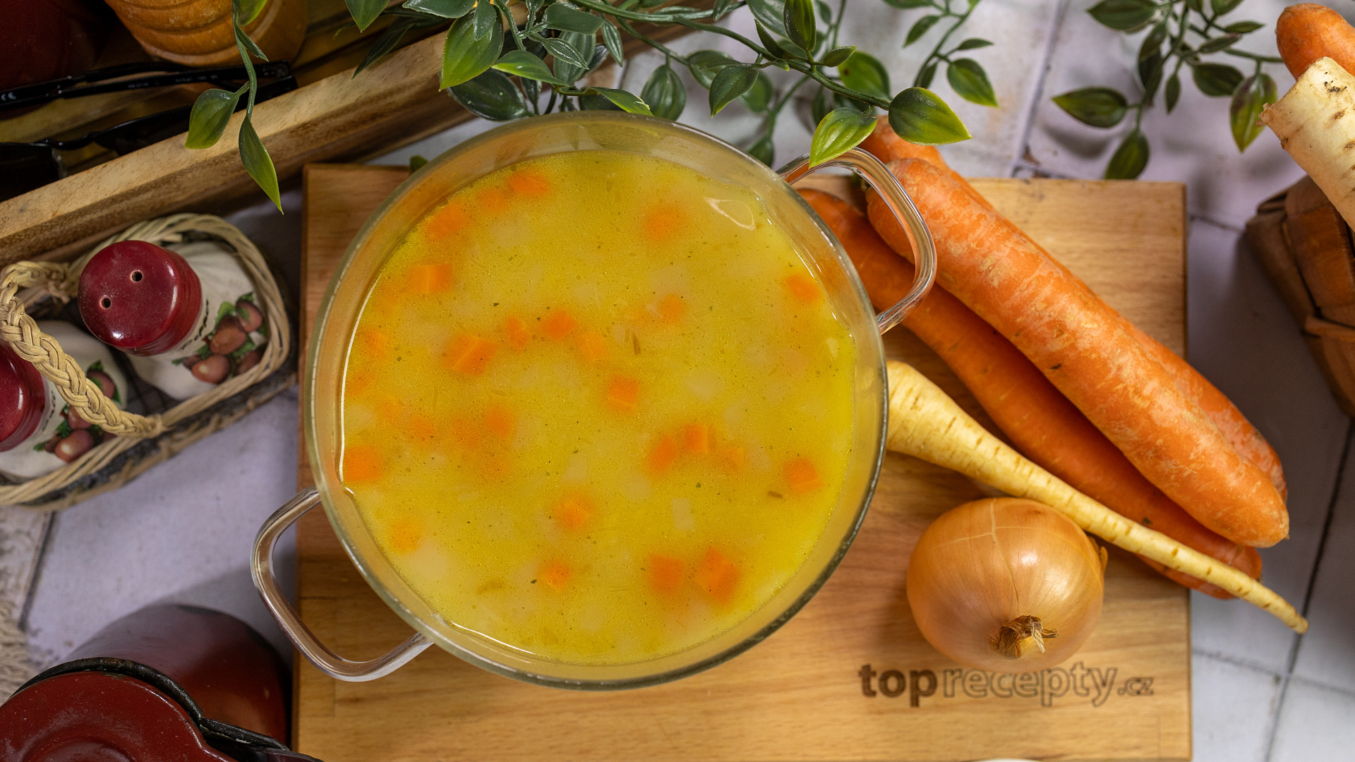 - Zeleninu dejte do vroucí polévky a na mírném ohni ji ještě asi půl hodiny povařte.