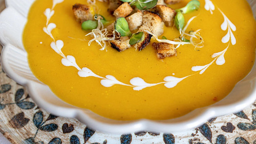 Dýňová polévka z pečené dýně: Pečením zvýrazníte chuť hlavní suroviny v polévce
