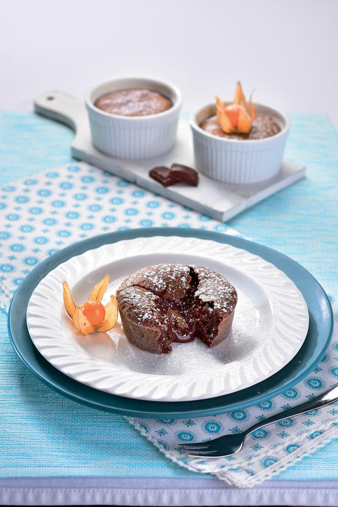 Fondán je moučník z extra čokoládového těsta. Po rozkrojení z něj teče horká láva