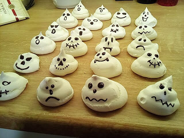 Halloweenští duchové z bílkového sněhu jsou strašidelní, tak je za trest sníme