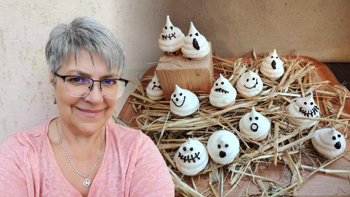 Halloweenští duchové z bílkového sněhu jsou strašidelní, tak je za trest sníme Toprecepty, Iva Jechová a koláž Toprecepty