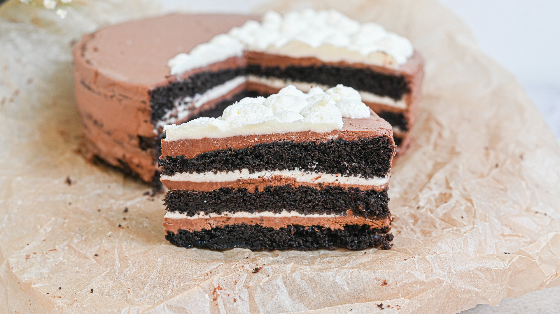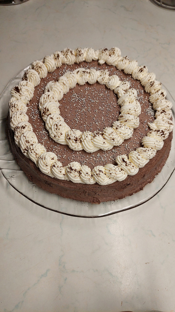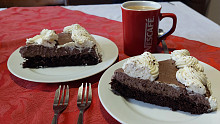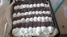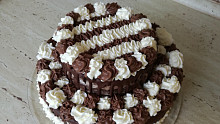 Harlekýn je retro dort našich babiček. Tmavý korpus zdobí šlehačka dvou barev