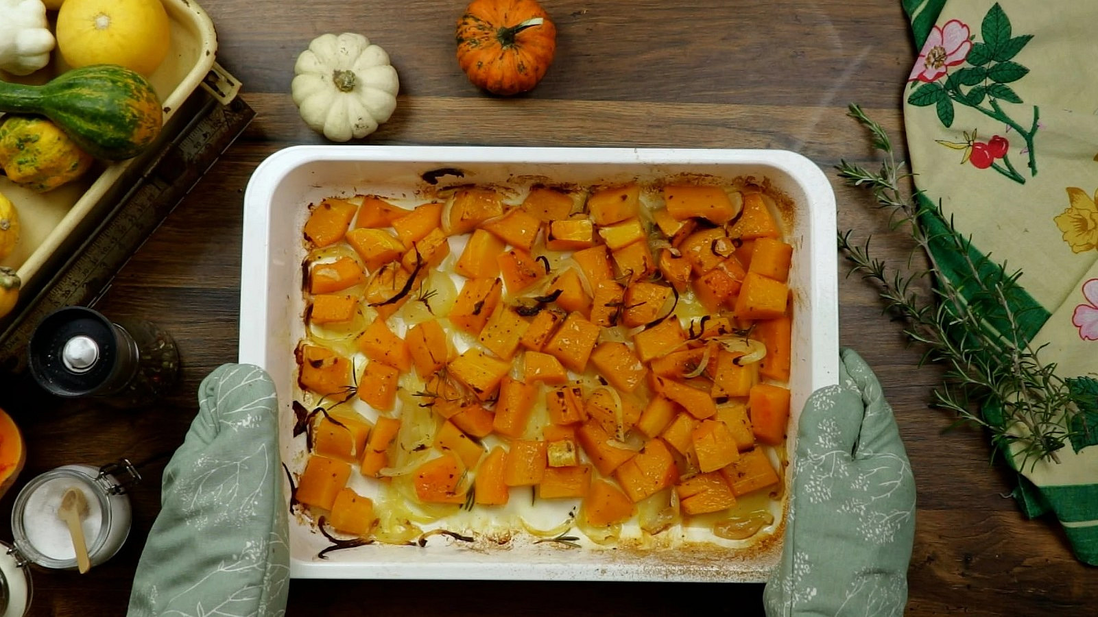 Pečená dýně hokaido s bramborami na bylinkách Zdroj: Toprecepty