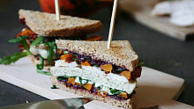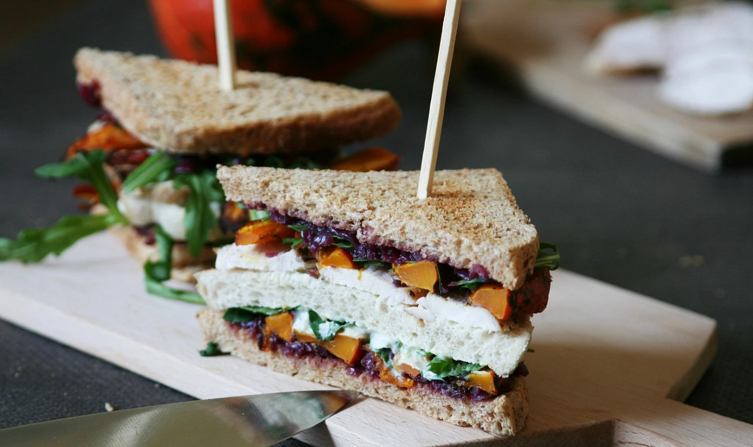 Kuřecí sendvič s karamelizovanou cibulí a pečenou dýní Zdroj: Toprecepty