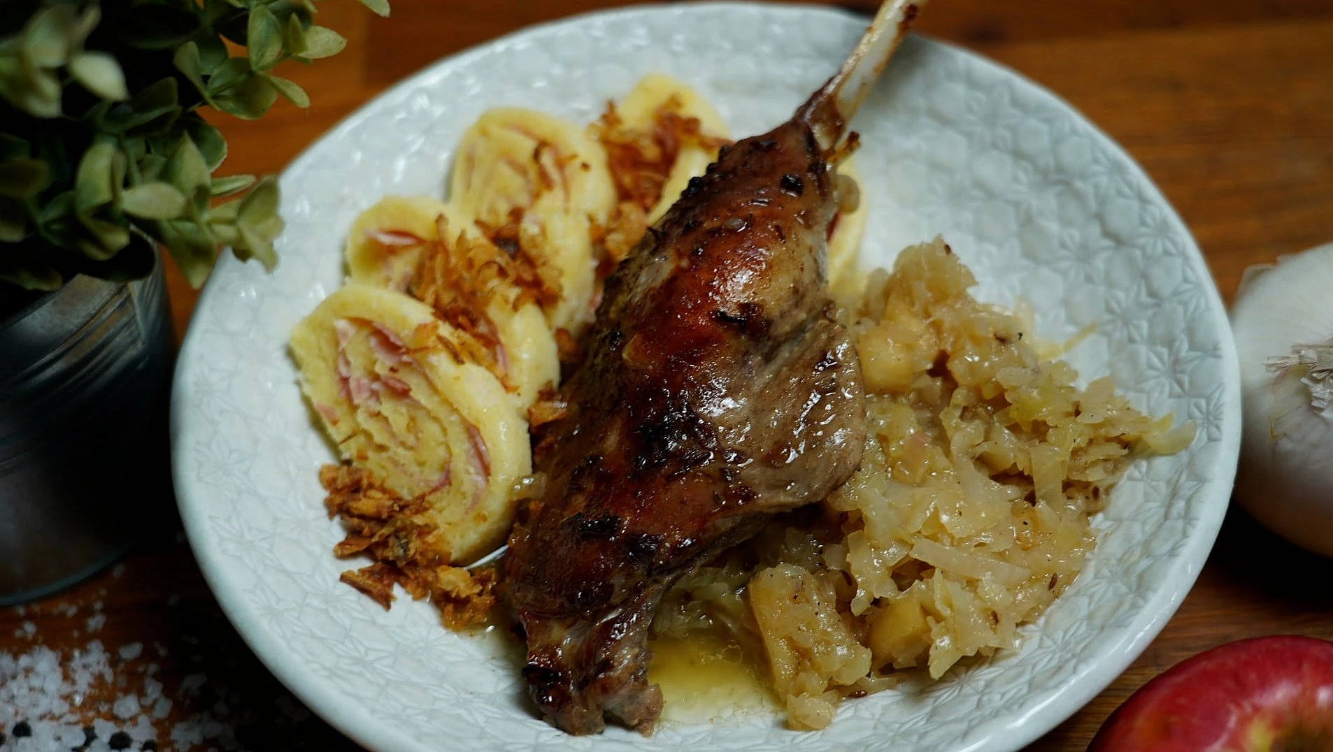 Husa se zelím a rolovaným knedlíkem: Se slavnostním obědem vám pomůže videorecept