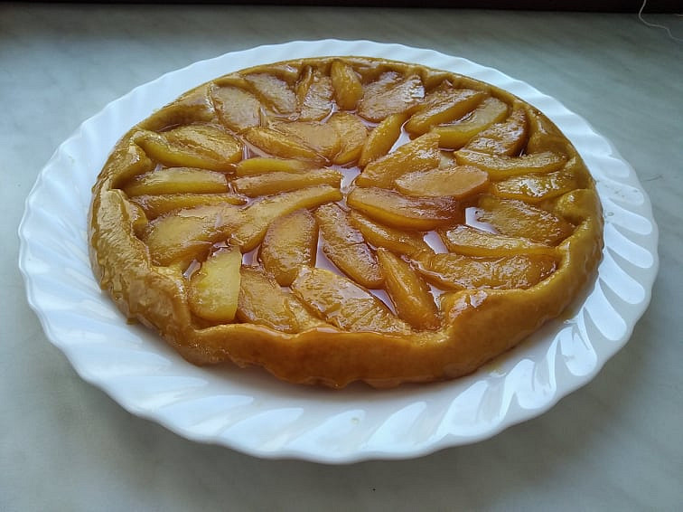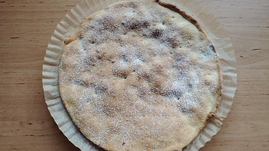 Jablečný koláč z křehkého těsta, pečený v remosce