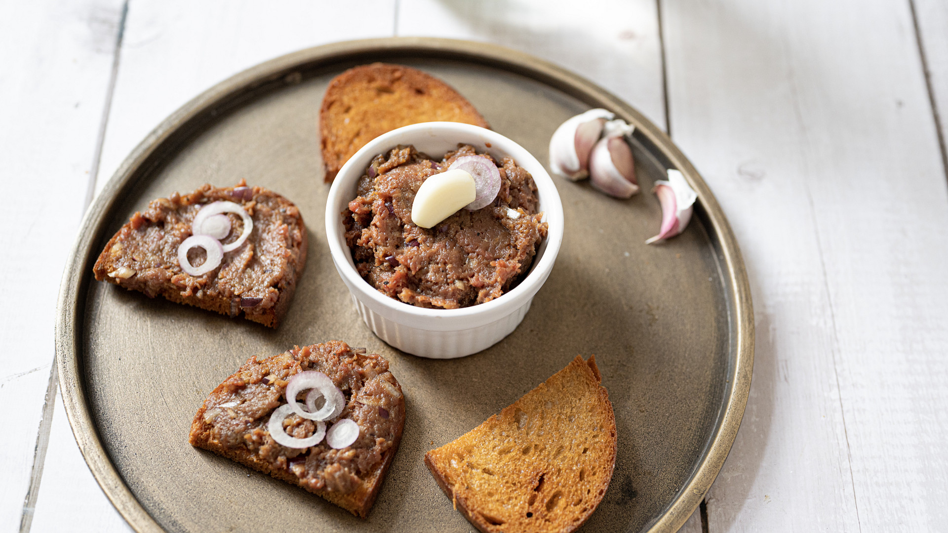 - Topinky osmažte na oleji nebo upečte v troubě, ještě horké potřete česnekem a podávejte k tataráku. Hosté si ho můžou sami namazat na topinky.