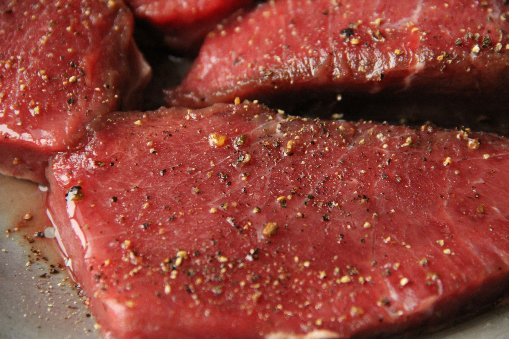 - Tekutina: Trocha načervenalé tekutiny pod masem je v pořádku. Pokud však maso u řezníka či v obchodě plave v kalné vodě, bylo pravděpodobně špatně skladováno. Dalším varovným signálem je, když přímo z masa vytéká příliš mnoho tekutiny.