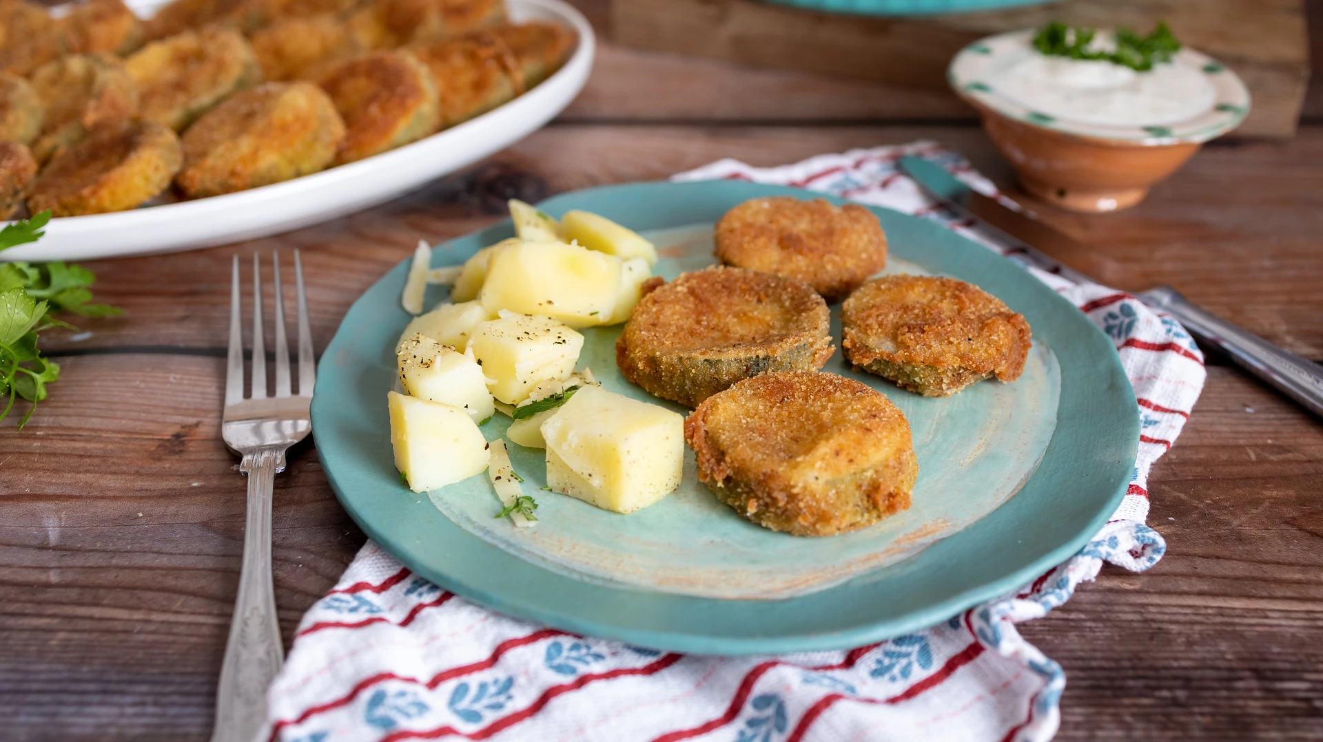 - Usmažené cukety podáváme s vařeným bramborem a tatarkou či dresinkem.