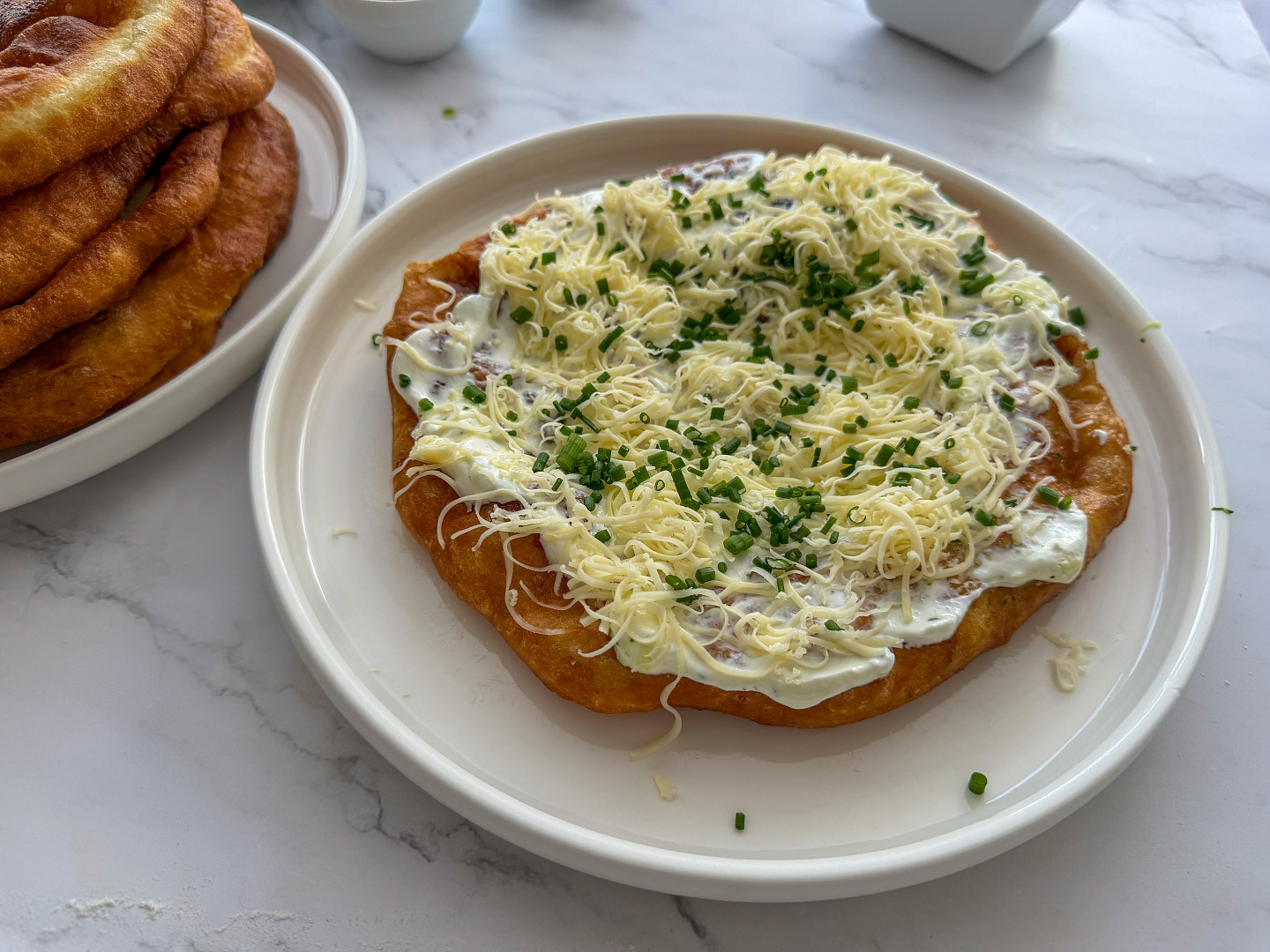 Kromě tradičního kynutého těsta si můžete langoše udělat také z bílého jogurtu a prášku do pečiva. Jeho velkou výhodou je blesková příprava bez kynutí.