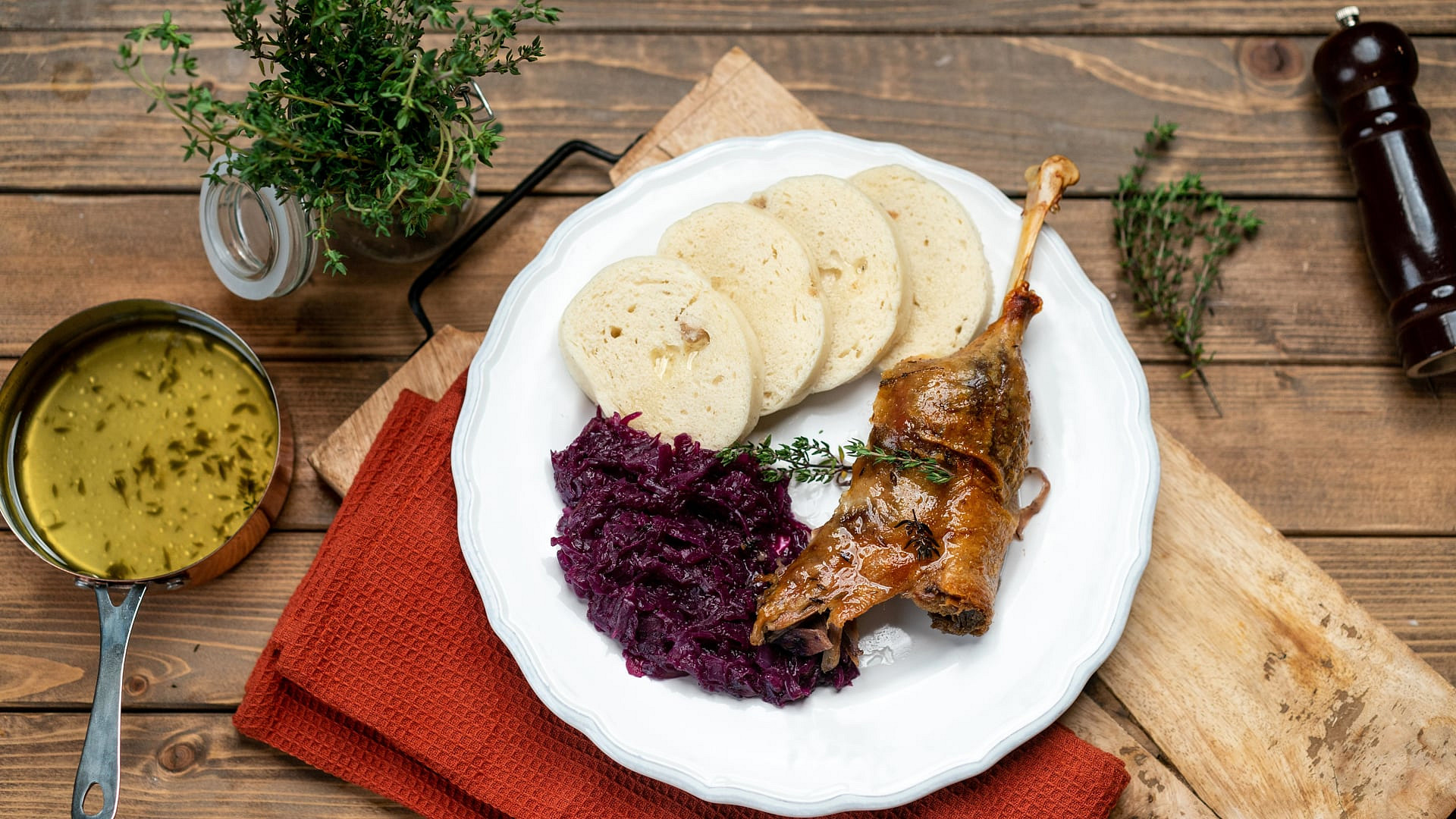 - Ke šťavnaté huse se skvěle hodí různé přílohy, vybírejte mezi oblíbenými knedlíky a bílým či červeným zelím.