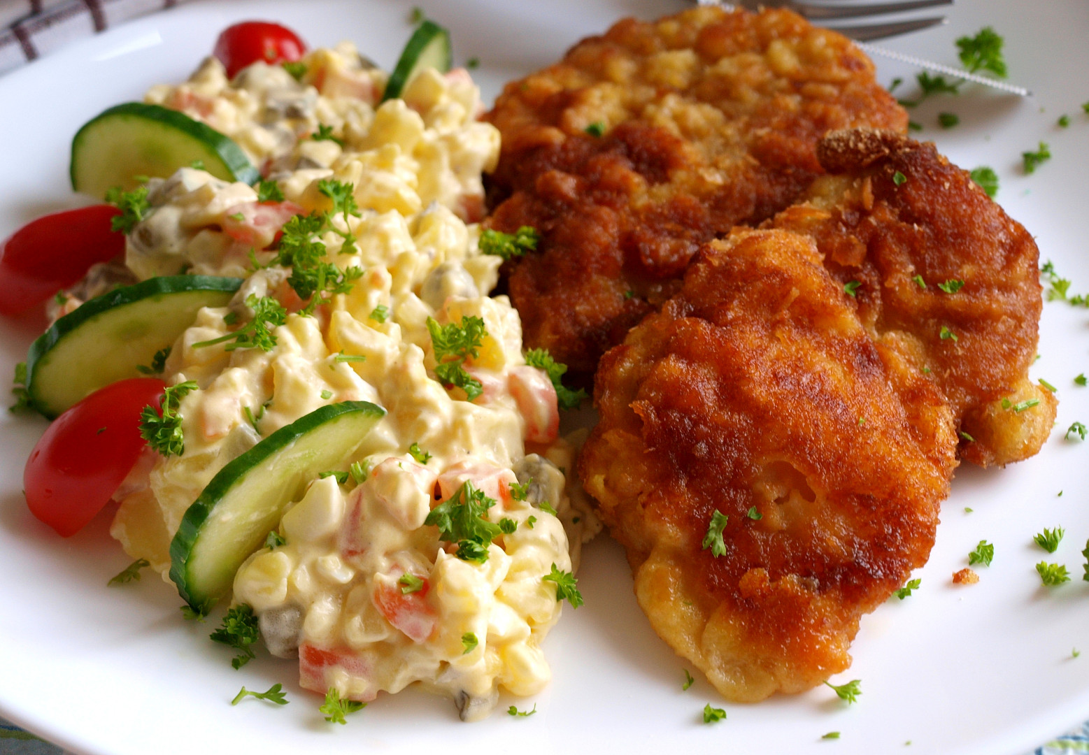 Řízek z kapra | Bramborový salát | Rybí polévka | Houbový kuba