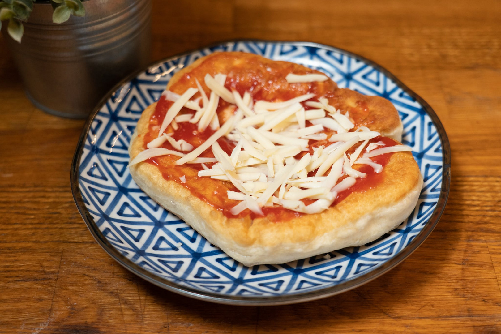 500 g hladké mouky, 21 g čerstvého droždí, 200 ml mléka, 150 g hustého bílého jogurtu, sůl, 1/2 lžičky jedlé sody, olej nebo sádlo, česnek, kečup a tvrdý sýr.