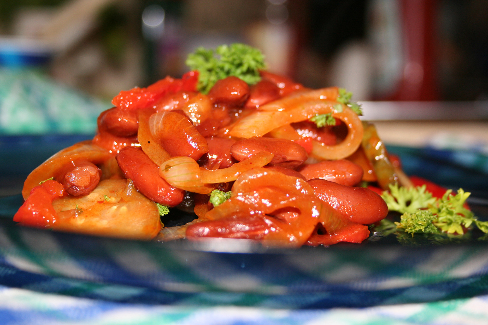 Možná vás potěší, že tahle dobrota se dá připravit jako minutka (zejména když použijete fazole z konzervy) a vše umícháte v jednom hrnci nebo pánvičce. Nachystejte si 2 hrsti červených fazolí, 1 menší skleničku sterilované sladkokyselé kapie (proužky), 3–4 kyselé okurky, 2 velké cibule a 3 stroužky česneku. Na omáčku budete potřebovat 200 ml kečupu a chilli omáčku. Dále sůl a olej na smažení.