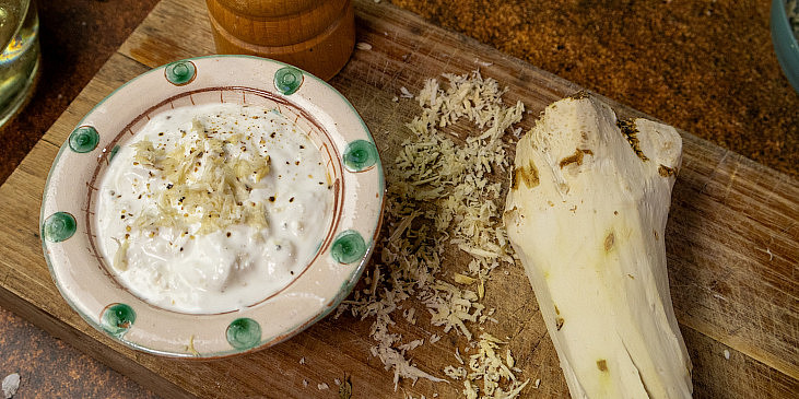 - Tip 4: Křenové výrobky se hodí zejména jako příloha k masu, můžete je ale využít i k nakrájeným zeleninovým proužkům místo hummusu.