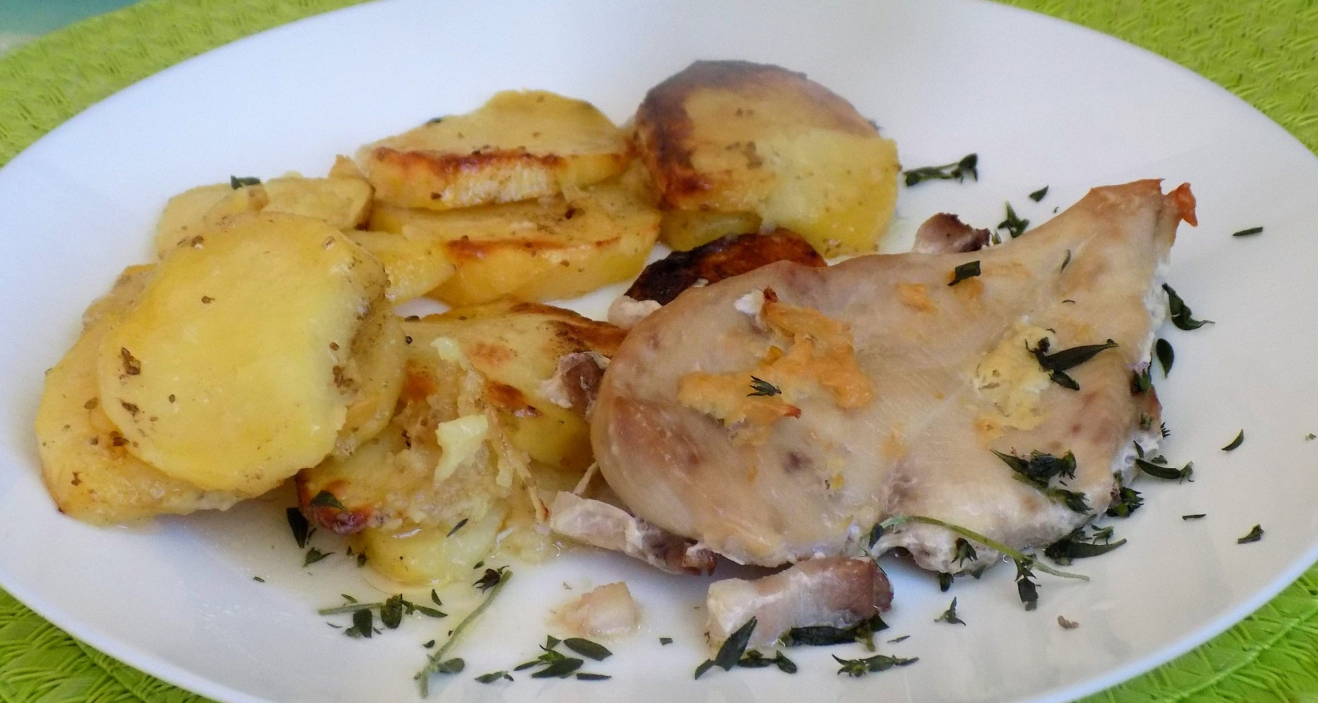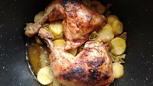 Kuřecí stehna můžeme upéct v remosce spolu s bramborami nebo se zeleninou