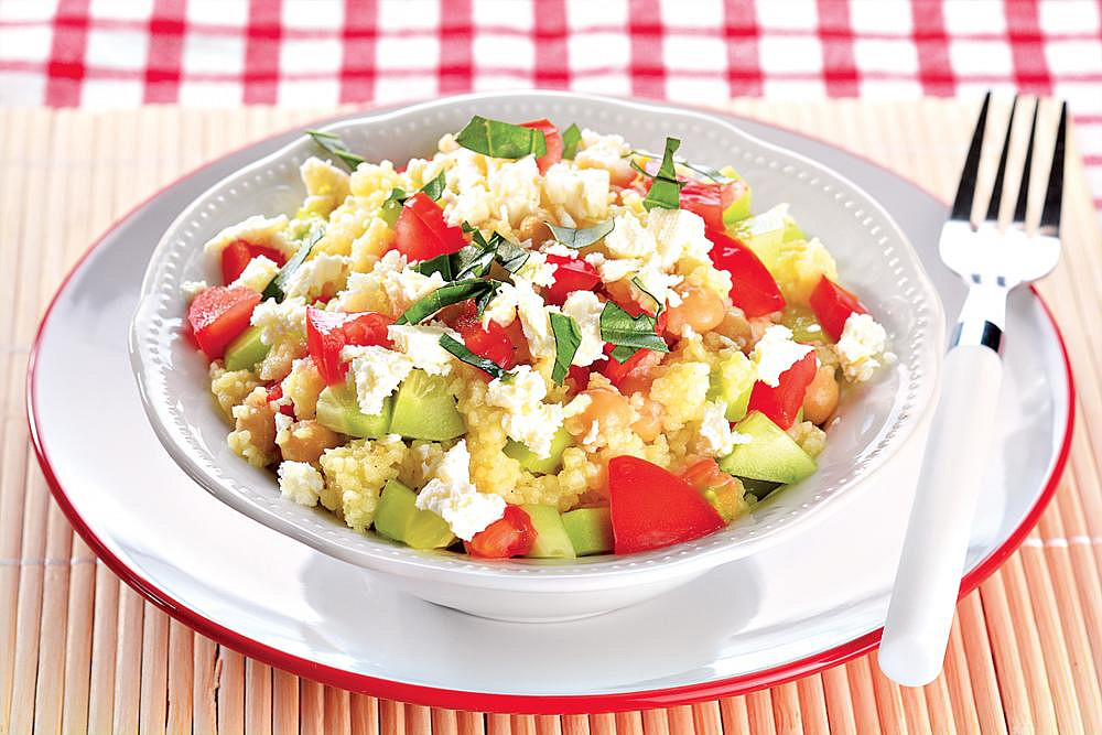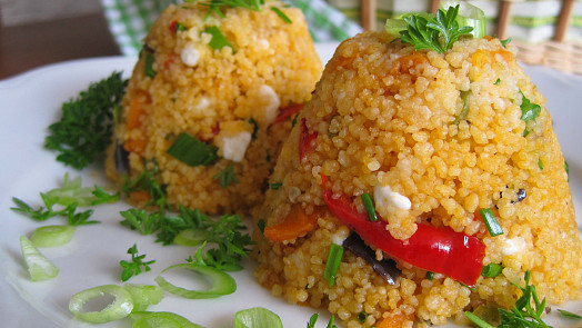 Jednoduše a rychle připravený kuskus chutná se sýrem cottage a zeleninou Toprecepty