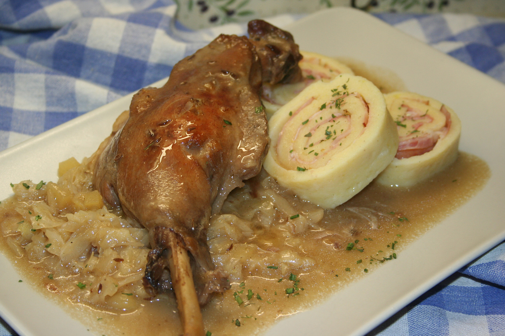 - Bramborové knedlíky s uzeným masem a kysaným zelím