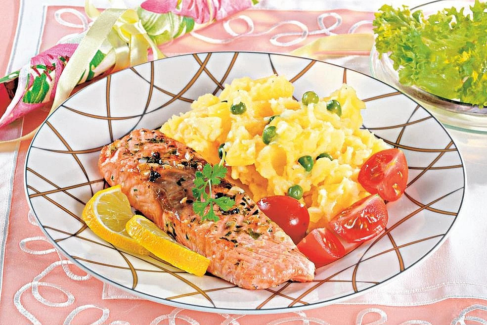 - Lososa v horkovzdušné fritéze pečte cca 15–20 minut.
