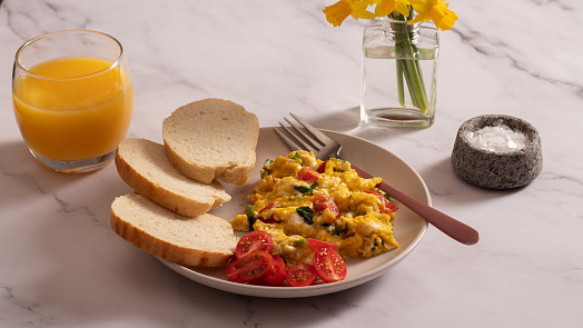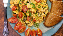 Domů - Tipy a triky - Míchaná vejce s rajčaty a medvědím česnekem - výtečný recept pro jarní dny