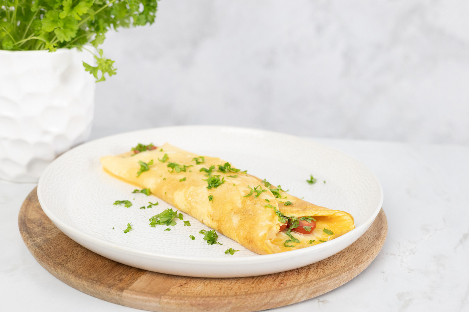 - Nakonec omeletu na talíři ještě ozdobte zeleninou a podávejte ji s oblíbeným pečivem.