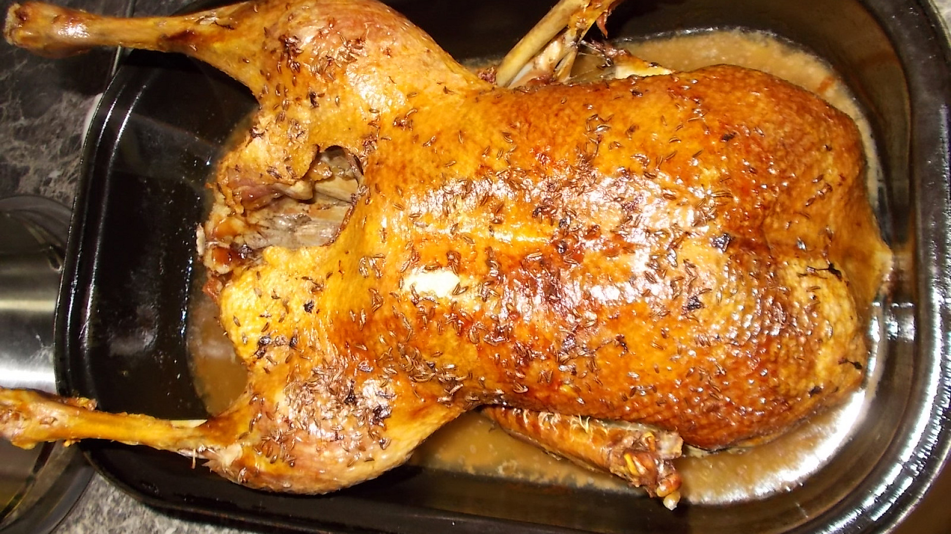 Husa pomalu pečená, předem naložená v rozmarýnovo-solném láku Zdroj: Toprecepty.cz