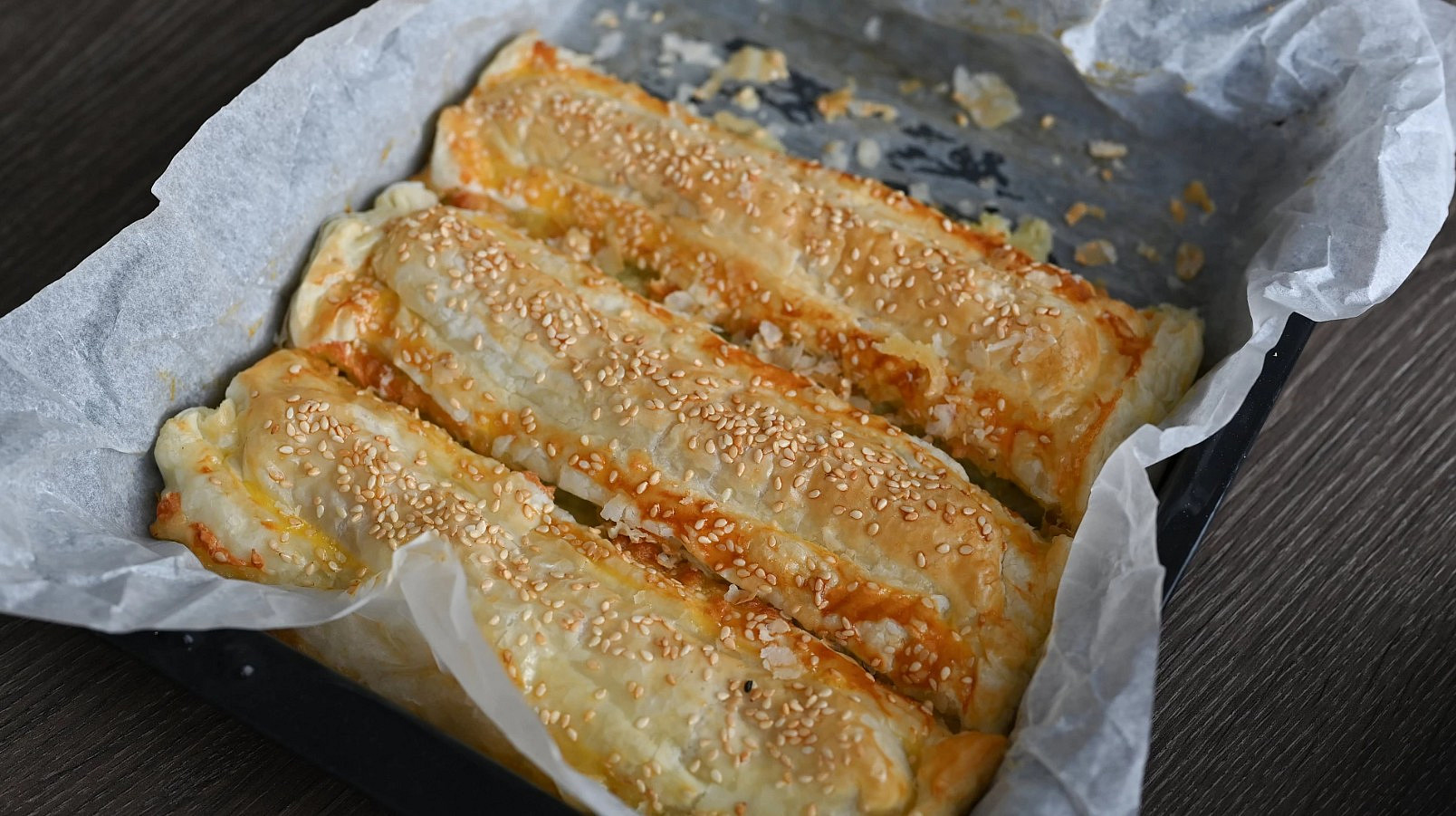 - Těsto potřete rozšlehaným vejcem, posypte sezamem a dejte zapéct do trouby předehřáté na 180 °C zhruba na čtvrt hodiny.