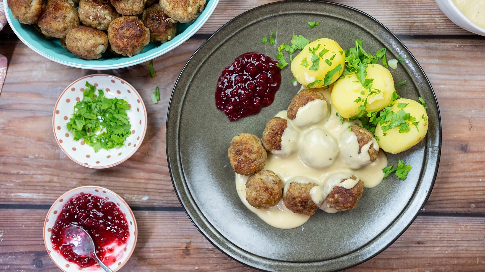 - Švédské masové kuličky s omáčkou a brusinkami