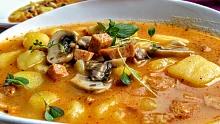 Guláš ze zelených pálivých paprik, uzeniny, brambor a žampionů Zdroj: Toprecepty