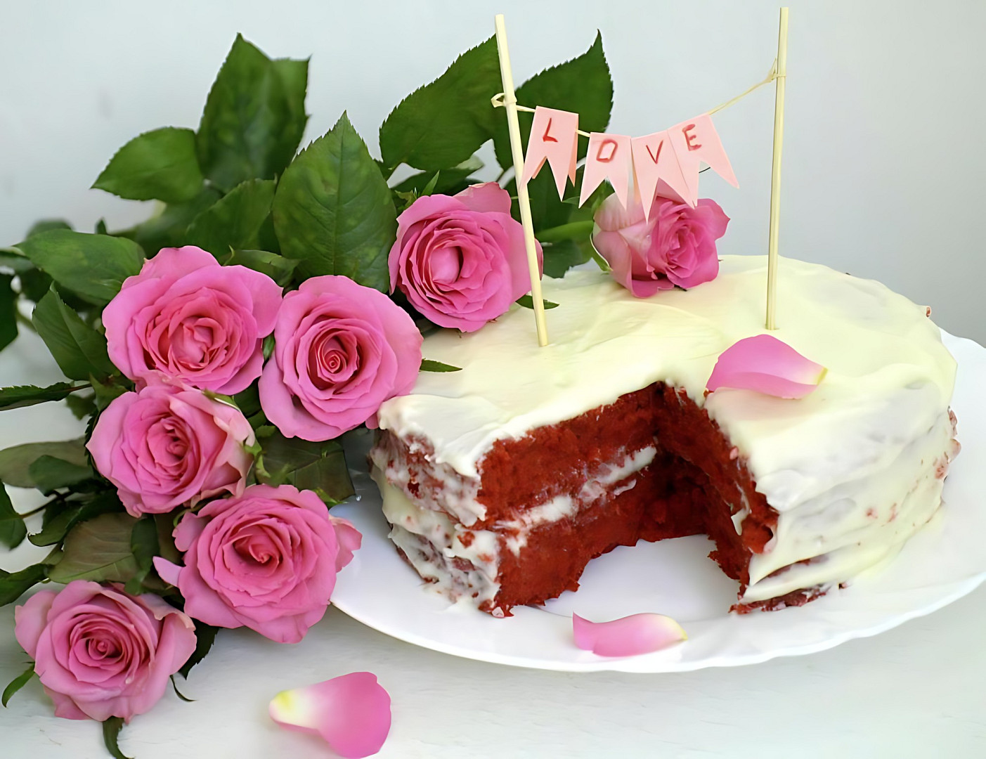 Dort Red Velvet: Jak připravit moučník z červeného těsta, ozdobený bílým krémem
