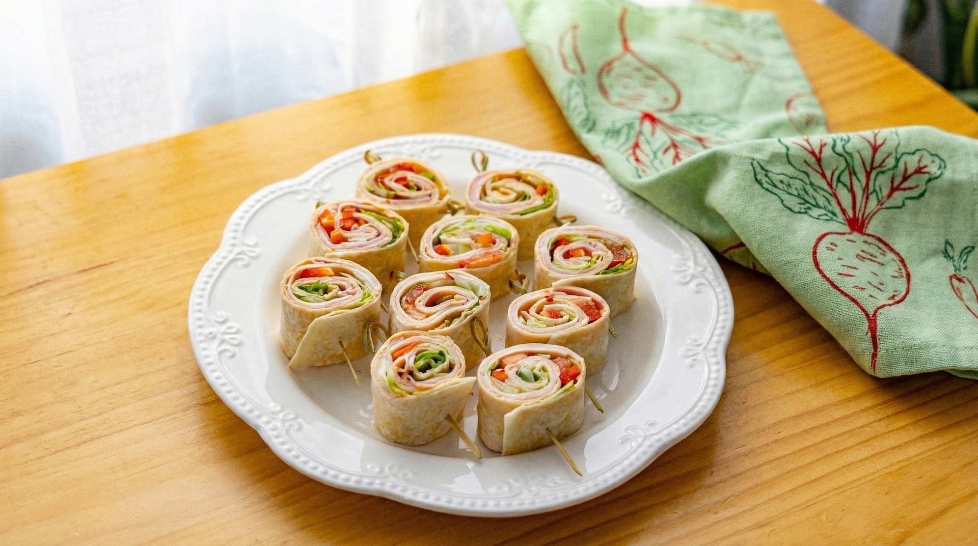 Rolky jsou na přípravu velmi jednoduché a nemáme na nich co zkazit. Jen navrstvíme ingredience, zamotáme a úhledně nakrájíme. A jak na to?