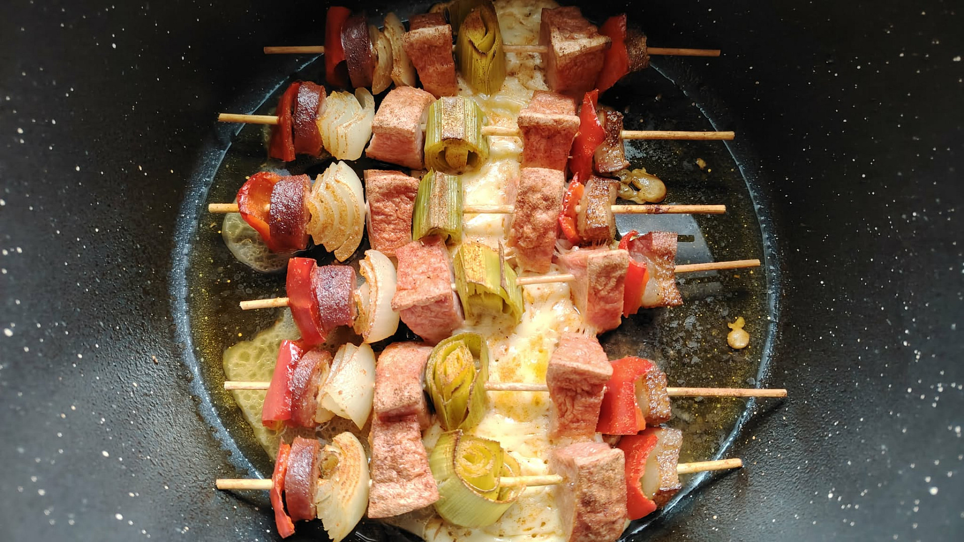 Špízy z remosky: Bohaté porce masa a zeleniny na špejli v úsporné stolní troubě