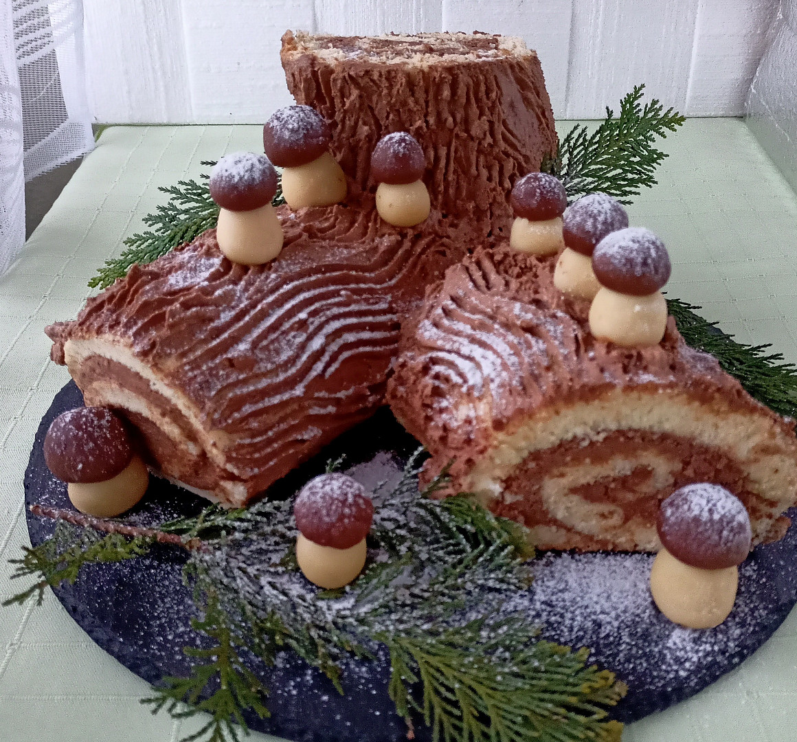 Piškotová roláda ozdobená jako kulaté poleno je moučníkem, který má v západních zemích dlouhou tradici. Na památku keltského zvyku pálit v ohništi dlouhé poleno, které se postupně přistrkovalo do ohně, aby plamen dlouho vydržel, vznikl dezert napodobující toto poleno.